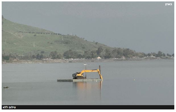 Ces derniers jours, de nombreux visiteurs des rives de la mer de Galilée ont été surpris par une scène inhabituelle : au milieu du lac, près de l’embouchure sud, une plateforme flottante transportant un engin de génie civil lourd est en pleine activité. Loin d’un incident ou d’un objet dérivant au hasard, il s’agit d’un chantier hydraulique planifié, conduit par Mekorot en coopération avec Autorité israélienne de l’eau et le conseil régional de la vallée du Jourdain.