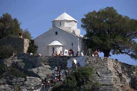 L’île est accessible depuis Athènes ou Thessalonique. Depuis Athènes, il est possible de prendre un vol intérieur vers l’île voisine de Skiathos, suivie d’une courte traversée en ferry vers Skopelos. Deux ports permettent d’accoster : Glossa, situé à 30 minutes de Skiathos, et le port principal de Chora, accessible en une heure.