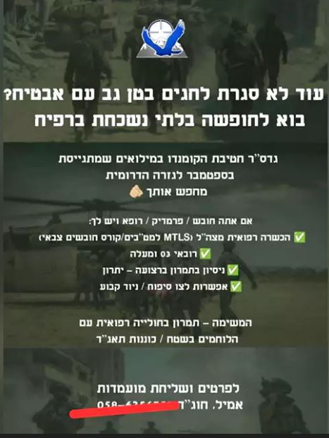 Derrière ce sarcasme, un appel bien réel à trouver médecins, paramédics et infirmiers prêts à rejoindre l’unité le mois prochain dans le sud, en pleine escalade militaire.