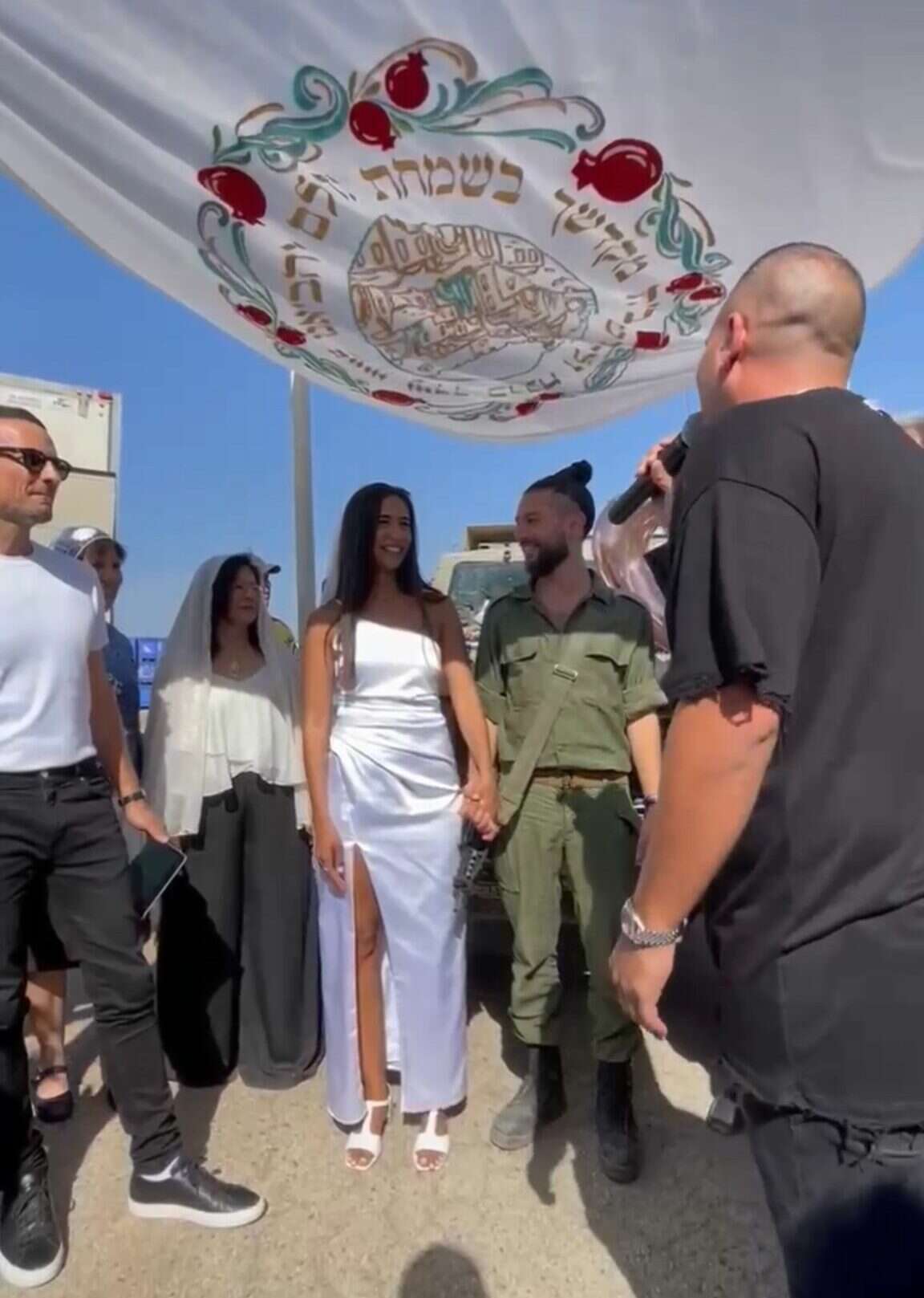 Ils sont entrés sous la Houpa à bord d’un tank avec la mariée vêtue d’une robe de mariée festive et le marié en uniforme de Tsahal. Celui qui a introduit l’heureux couple sous la Houpa était le chanteur Alcana Marciano et la cérémonie était animée par Guy Zo-Eretz .